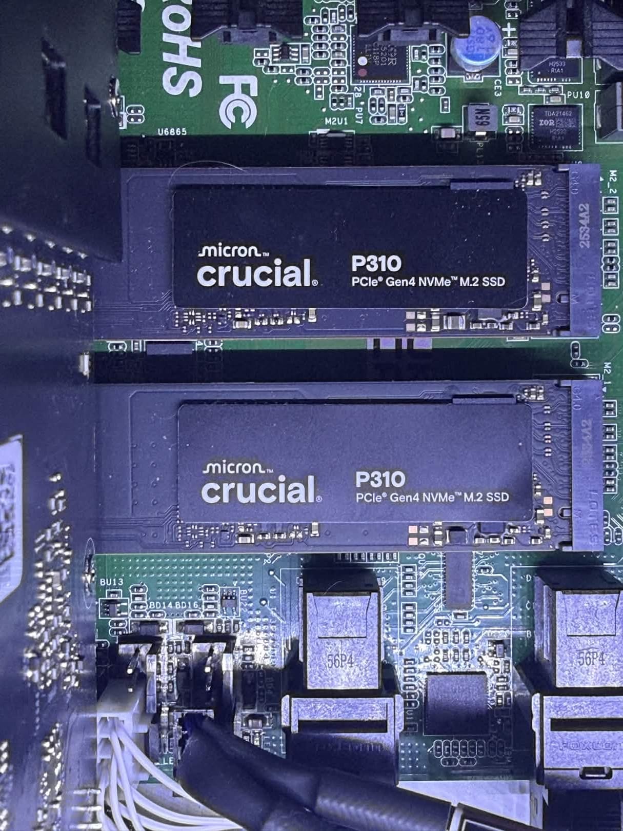 - Hot Storage: (2x) 1TB Gen 4 Crucial P310 NVMe
